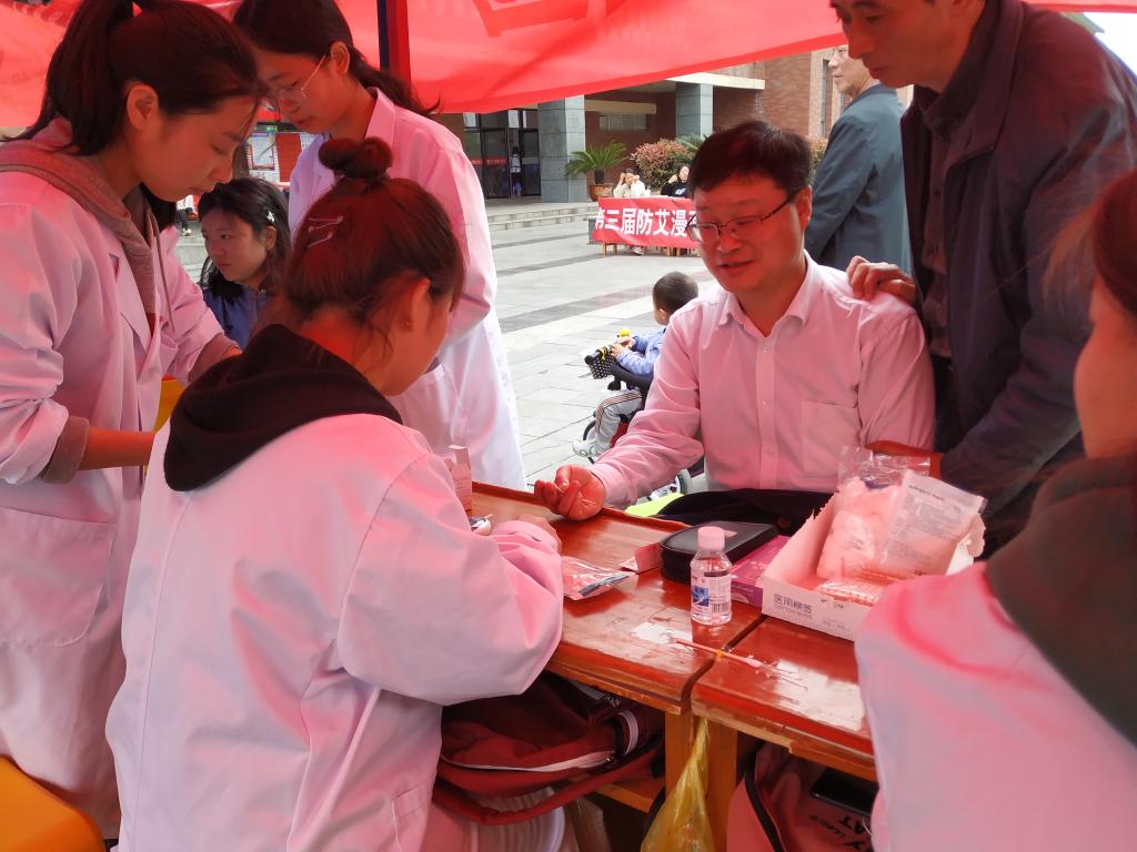 经过繁忙的筹备,义诊活动于2019年4月8日早上8:00正式开始。通过分组,每位工作人员各司其职,将自己所学的技能贯彻实施、灵活应用。严谨认真的同时,不忘给予咨询者体贴入微的人文关怀,让他们得到优质服务的同时,感受到身心的愉悦。此次共免费义诊2000余人次,其中测血压1065人、推拿253人、耳穴370人、测血糖235人、拔罐刮痧共75人。其中量血压、测血糖、拔罐受到热烈欢迎,活动现场有指导老师的现场指导。在给一个80岁