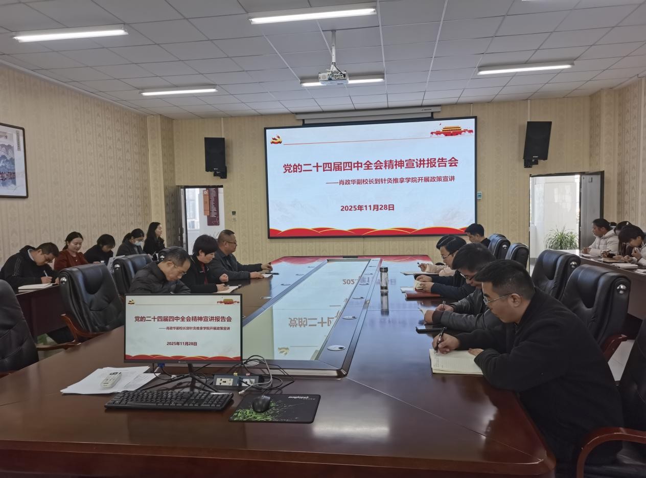 为深入学习贯彻党的二十届四中全会精神,根据学校统一部署,11月28日上午,肖政华副校长深入yl8cc永利官网开展党的二十届四中全会精神专题宣讲。宣讲会在针推学院218会议室举行,学院党政领导班子成员、全体教职工、学生代表参加了报告会。