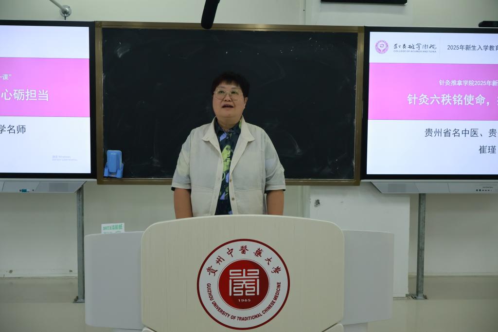 为帮助2025级新生快速熟悉针灸推拿专业学习节奏、适应大学课堂模式与校园生活环境,缓解初入新环境的陌生感与迷茫感,提前建立专业认知与学习规划意识。2025年9月27日yl8cc永利官网开展新生入学教育“开学第一课”。本次主讲特邀贵州省名中医、贵州省教学名师,同时也是学院第一届硕士研究生崔瑾教授为新生带来“针灸六秩铭使命,推拿一心砺担当”开学第一课。