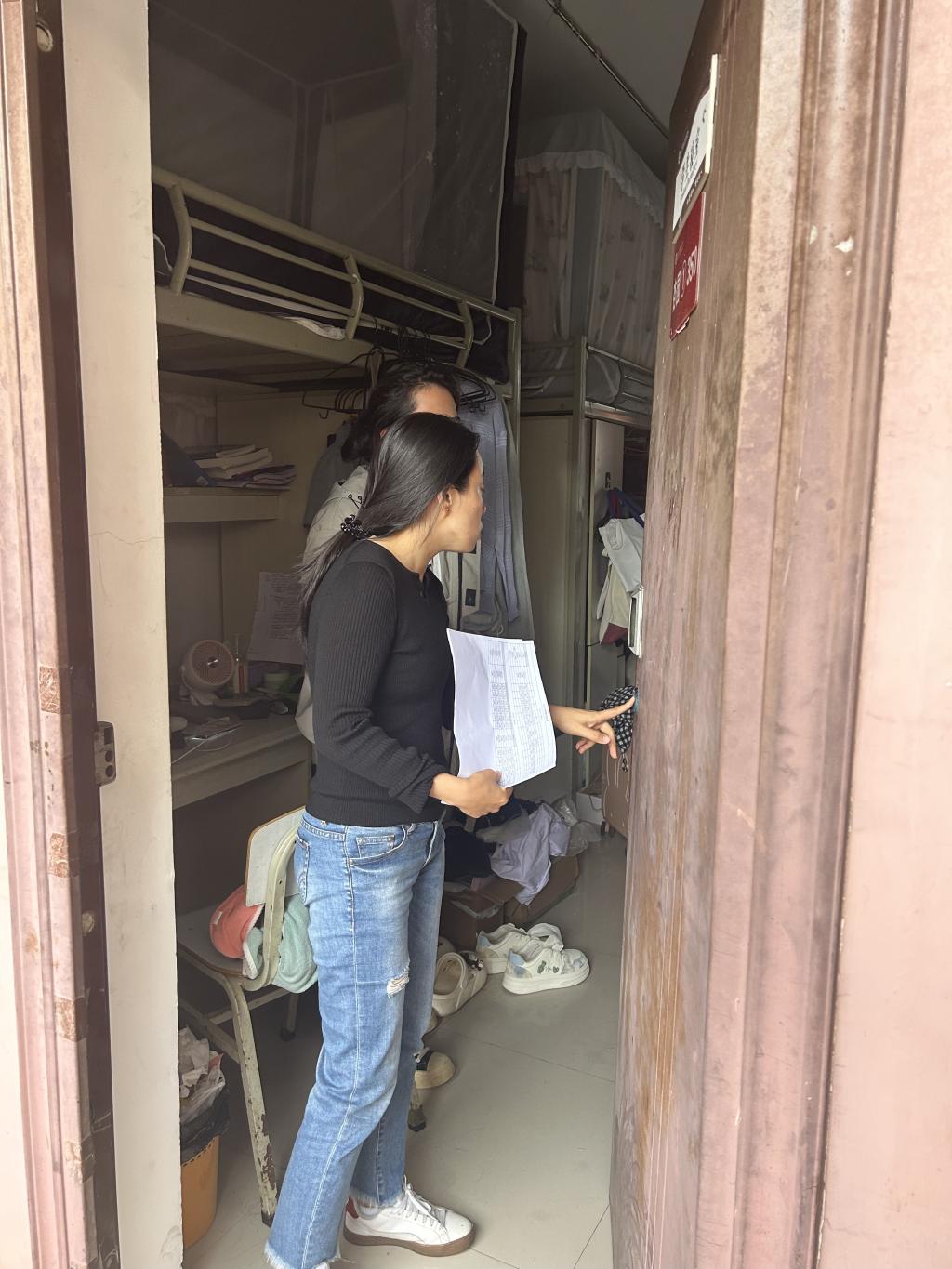 9月30日上午和下午,学院党委副书记帅乾、学办副主任李姝臻及部分辅导员,对学院部分班级寝室开展节前安全专项检查和安全教育。检查组对学生寝室的用电、用水、防盗等安全措施进行了检查,对已离校未断电的情况督促整改,对钥匙未及时取下的情况进行了通报和整改。同时,检查组一行对学生开展节前安全教育。对于离校同学,要求离开寝室时要断电,返家路上注意交通安全。对于留校同学,要求寝室安全用水用电,禁止钥匙挂在门口,晚归要注意安全,有问题第一时间联系辅导员。
