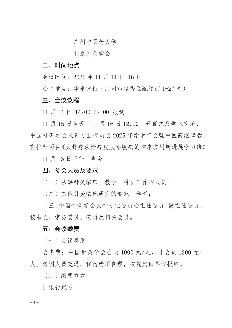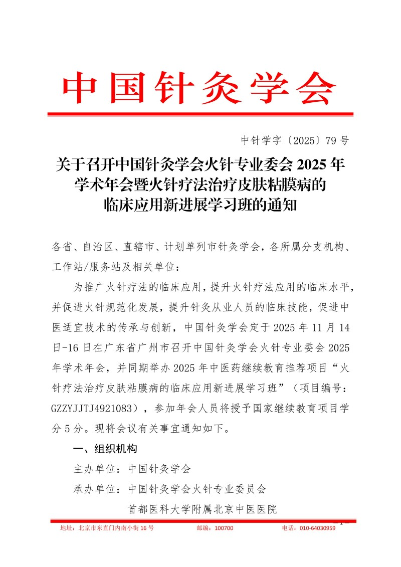 关于召开中国针灸学会火针专业委会2025年学术年会暨火针疗法治疗皮肤粘膜病的临床应用新进展学习班的通知--中国针灸学会官网  https://www.caam.cn/article/3396